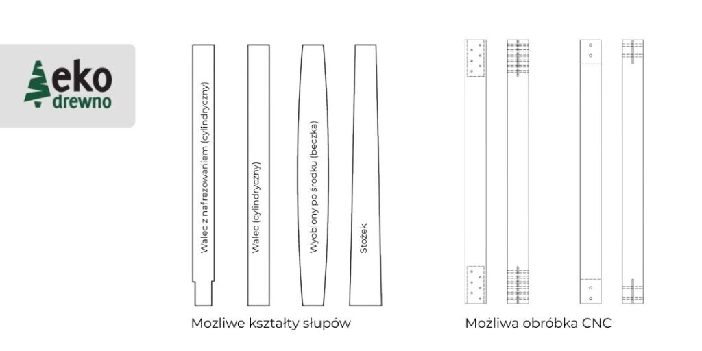 Słupy okrągłe z drewna klejonego warstwowo.