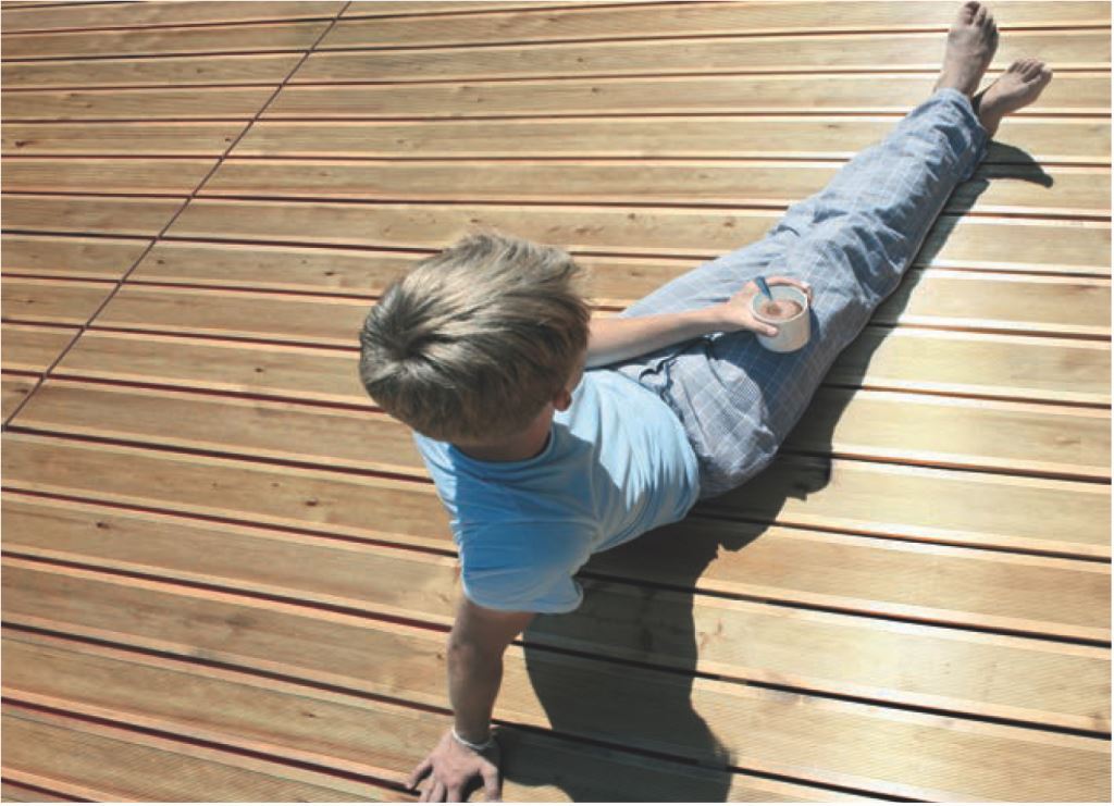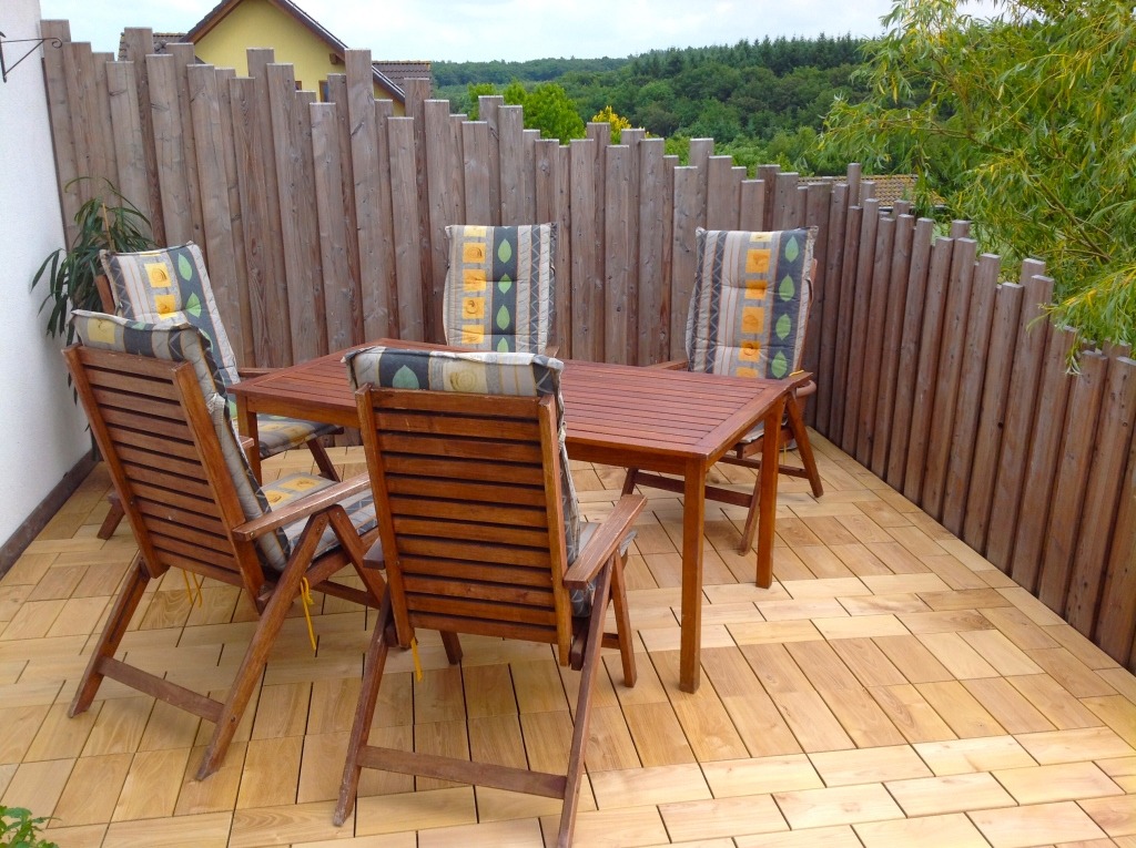 W przeciwieństwie do terakoty drewno tarasowe jest ciepłe dla stóp, odporne na mróz i antypoślizgowe. Trwałość tarasów wykonanych ze starannie wyselekcjonowanych gatunków drewna i zamontowanych z zachowaniem zasad poprawnego montażu mierzona jest w dziesiątkach lat, a ich bieżąca konserwacja może w ogóle nie być potrzebna.